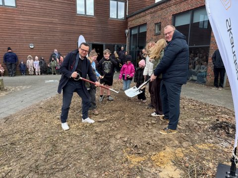 Tirsdag d. 3. februar 2026 blev første spadestik taget til projektet. Der foregik med deltagelse af borgmesteren, repræsentanter fra Multisalen og alle skolens ansatte og børn.