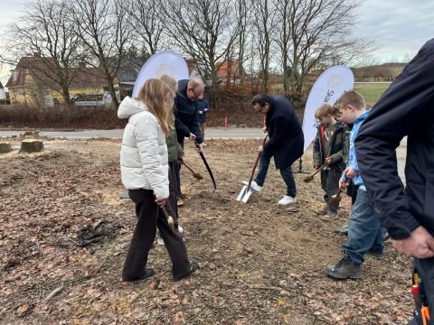 Tirsdag d. 3. februar 2026 blev første spadestik taget til projektet. Der foregik med deltagelse af borgmesteren, repræsentanter fra Multisalen og alle skolens ansatte og børn.