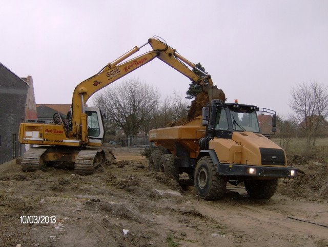 Efter at nedrivningsarbejdet blev færdigt og brokker og det gamle fundament er kørt væk, er det blevet tid til at få en del jord kørt væk. Grunden skråner fra skolen op mod Tyndeleddet. Det jord skulle graves af, så fundamentet kommer til at ligge vandret. Desuden skulle 80 - 90 cm jord graves af i hele byggefeltet. I alt skulle ca. 1500 kubikmeter jord graves af og køres væk. Et team på 5 - 6 mand har arbejdet hele weekenden med denne opgave, der har gjort at over hundrede læs jord er kørt væk. I løbet af næste uge begynder udgravningen til selve fundamentet, hvis vejret tillader det.